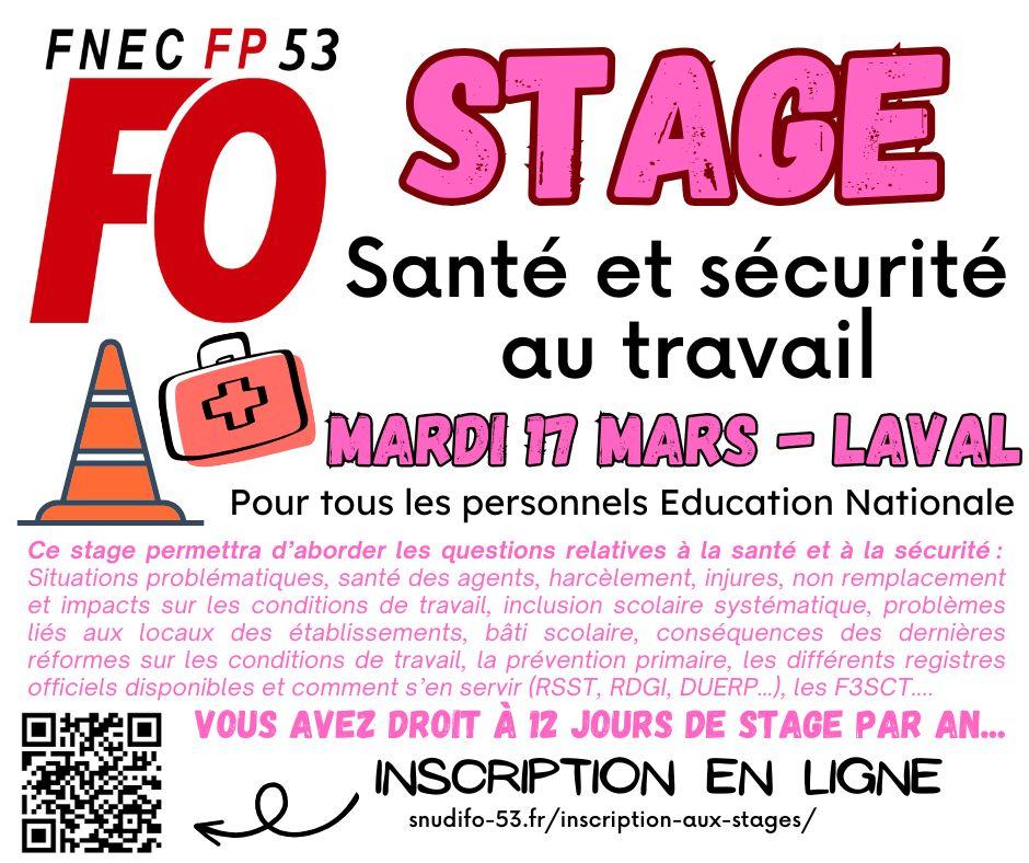 La FNEC-FP-FO 53 organise plusieurs stages pour l’année scolaire 2025-2026 :