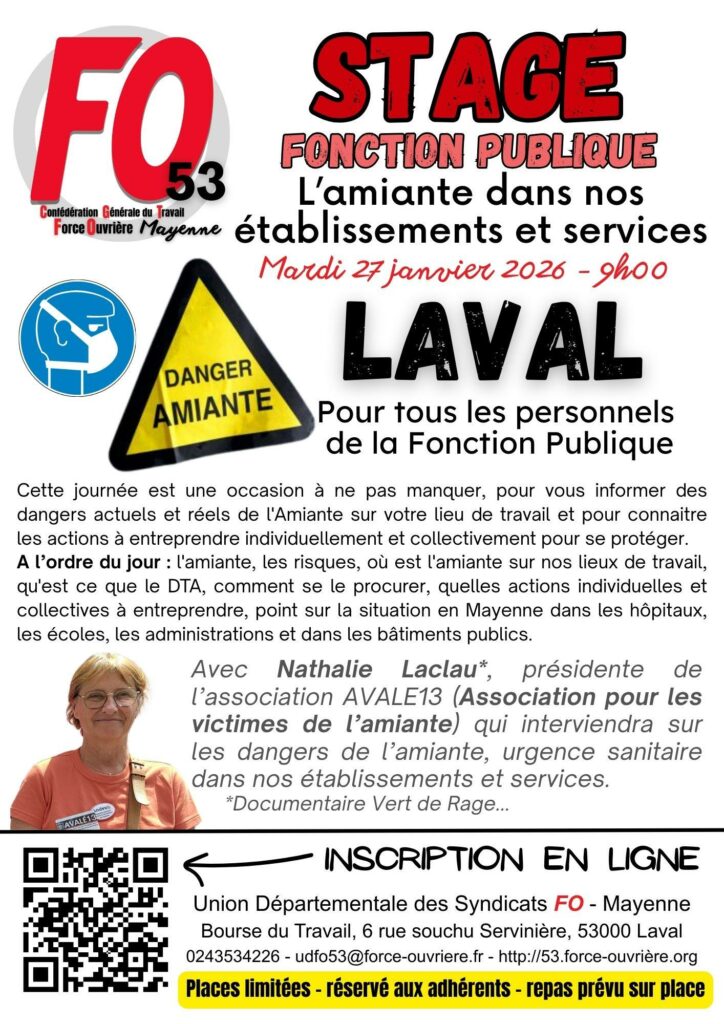- Stage amiante : le mardi 27 janvier 2026 (pour tous les personnels, réservé adhérents FO)